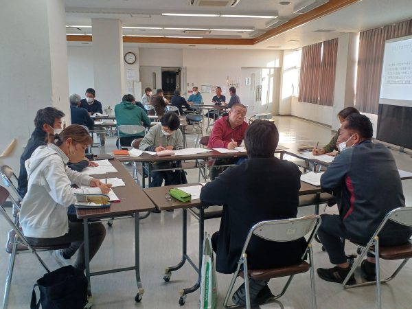 19名の参加でした。7月30日に発令された津波警報時にどう対応したのか、そして課題と感じたことは何か、自分たちにできることは何かなど、3グループに分かれて意見交換がなされました。当日は、事業所の所在地などによっても対応が違いましたが、今後に備えてていかなければいけないことは何か等気づきを得ることができたのではないかと思います。
